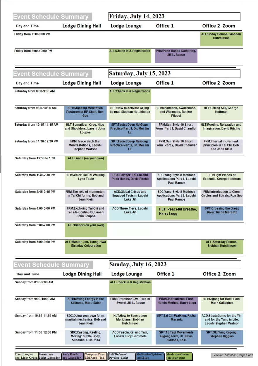 Tai Chi Park 2023 Schedule